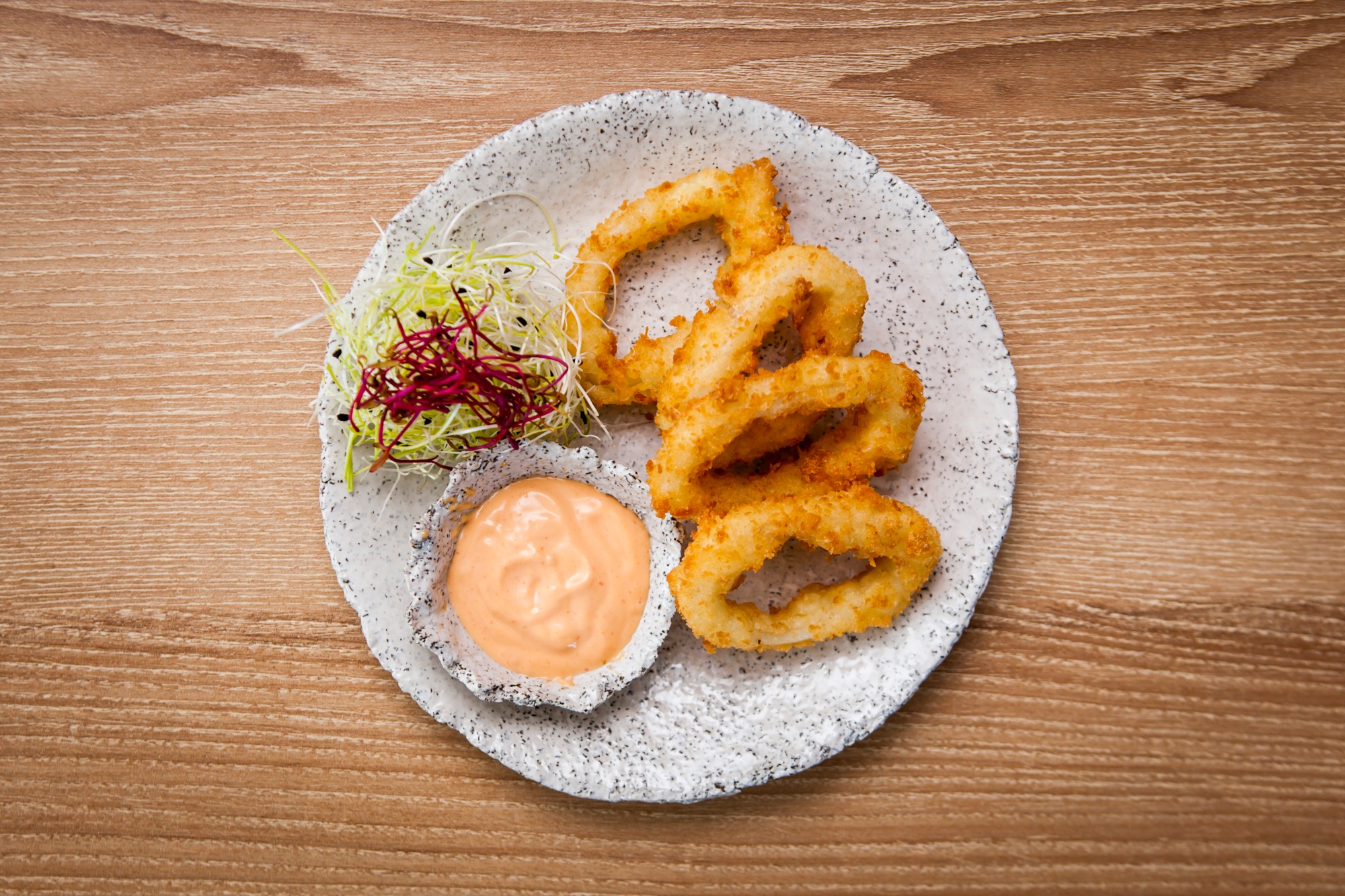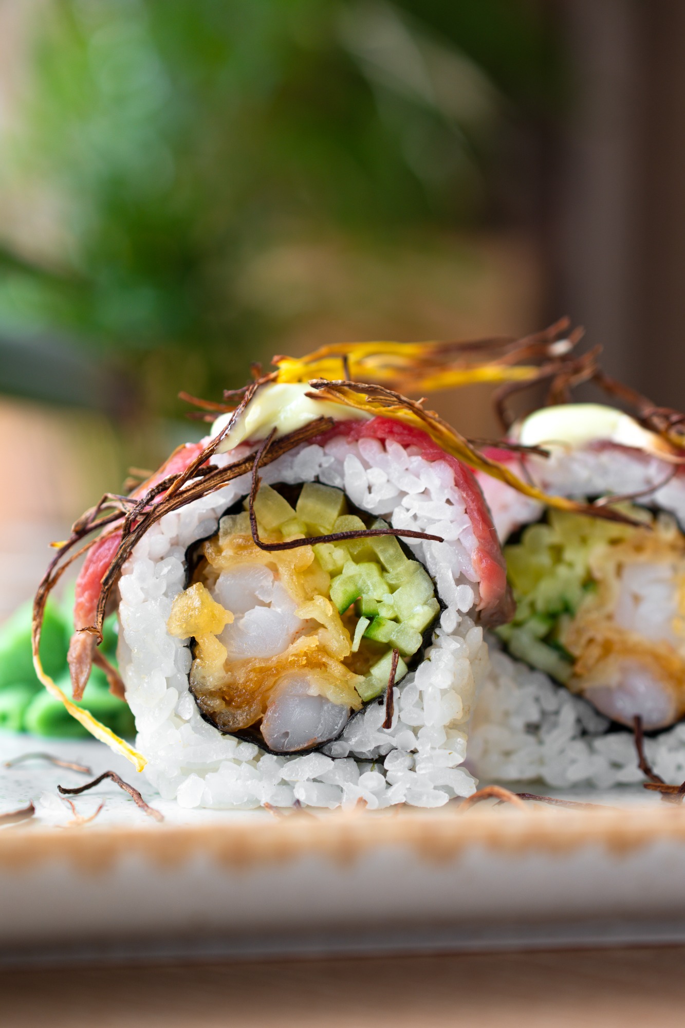 tuńczyk w tempurze, ogórek, rzepa, spicy mayo -