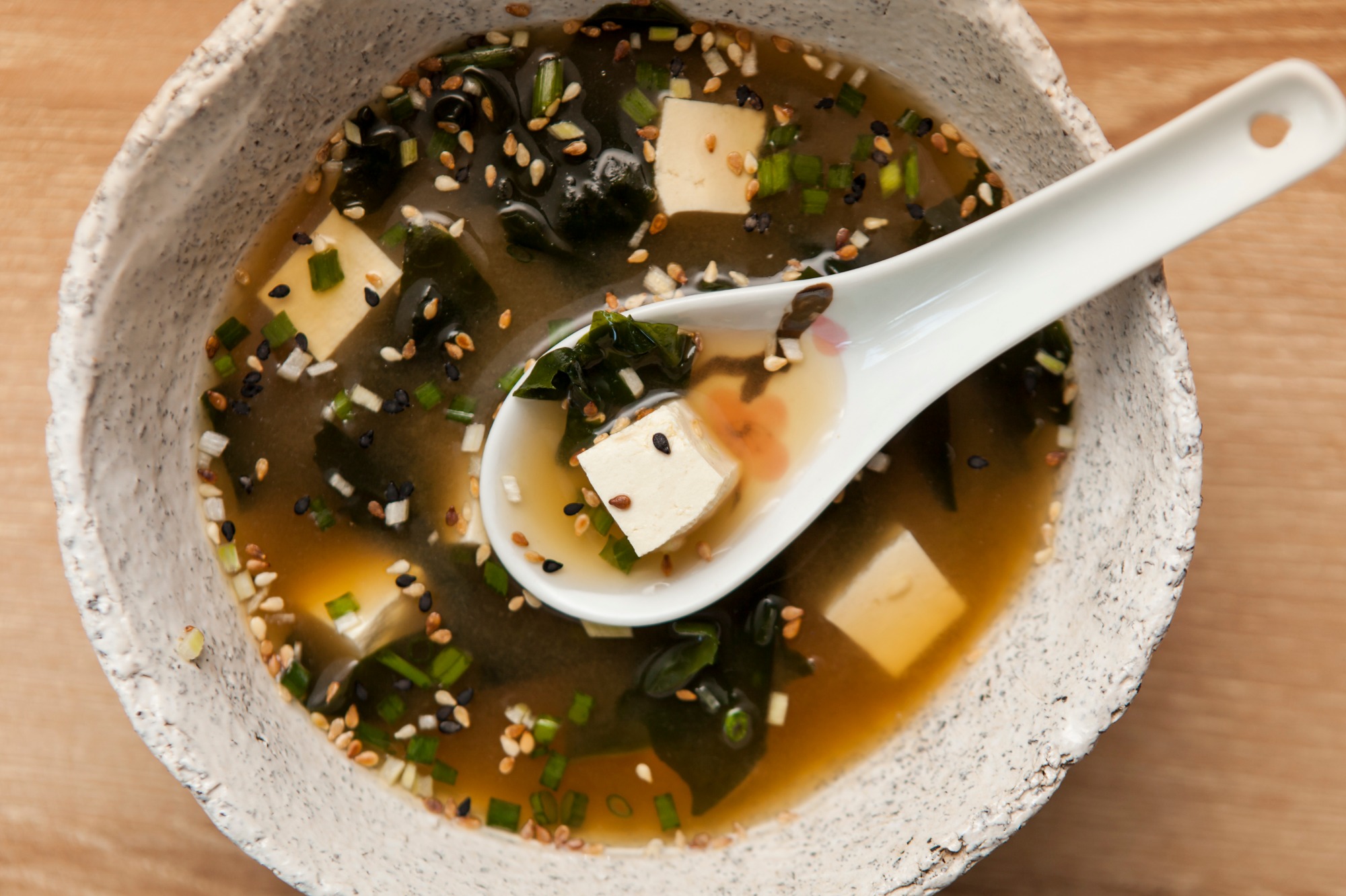 krewetka tygrysia w panco, ogórek, rzepa, czarny ryż, serek, płatek sojowy -