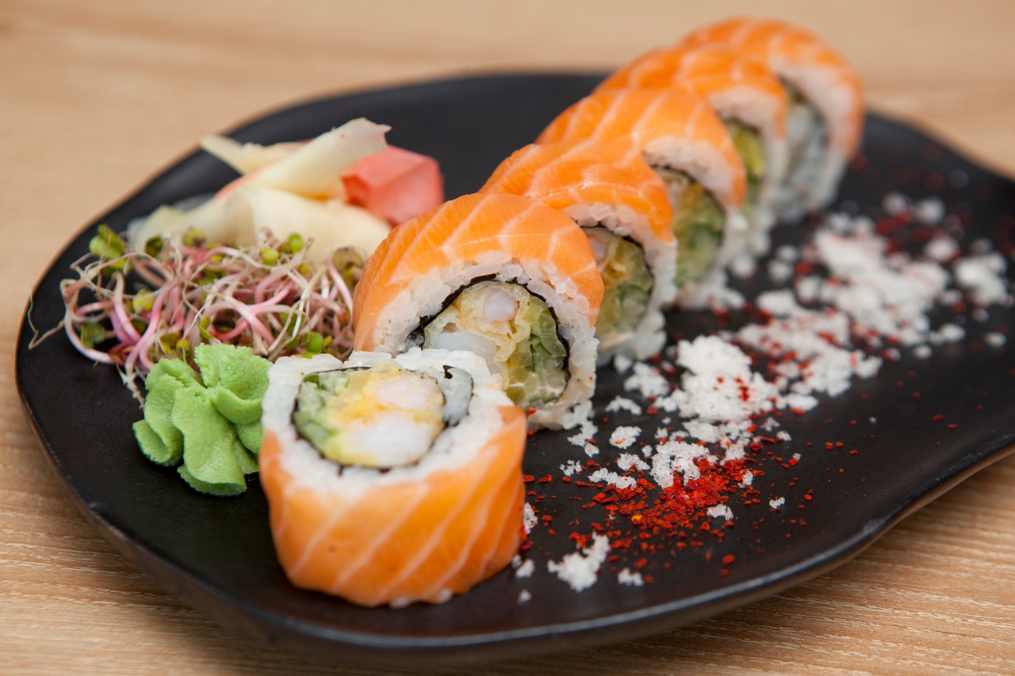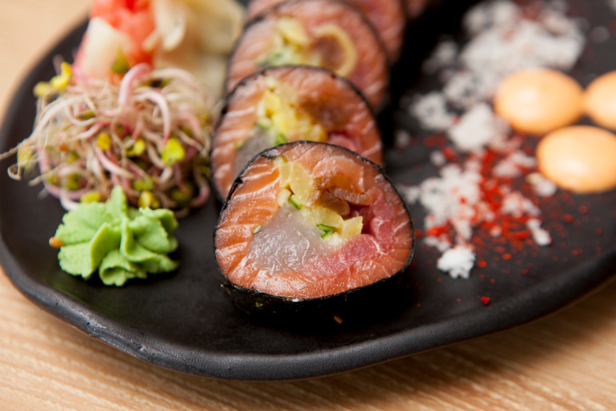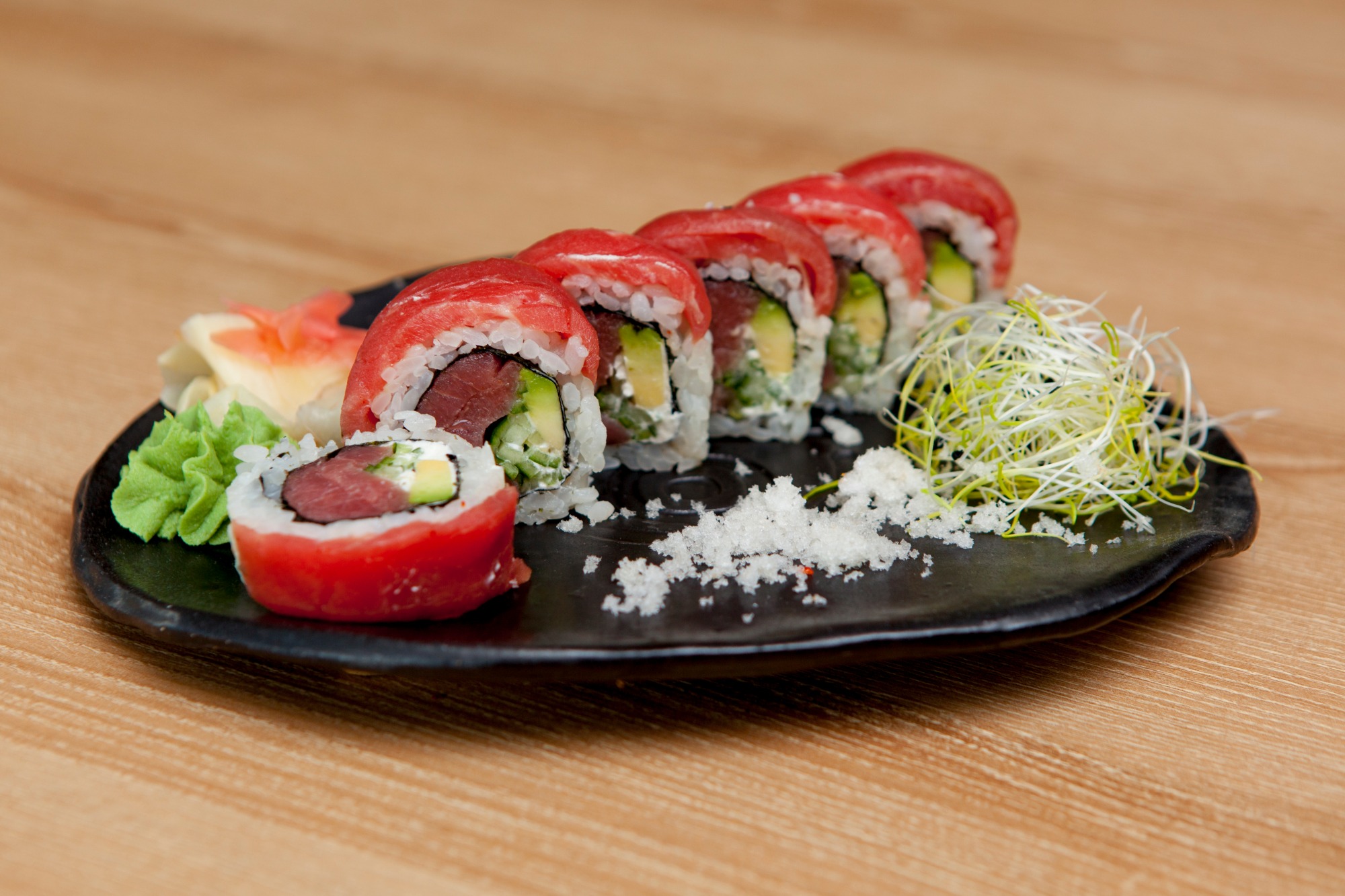 seriola, ogórek, awokado, serek, obłożone seriola, z miętą i limonką -