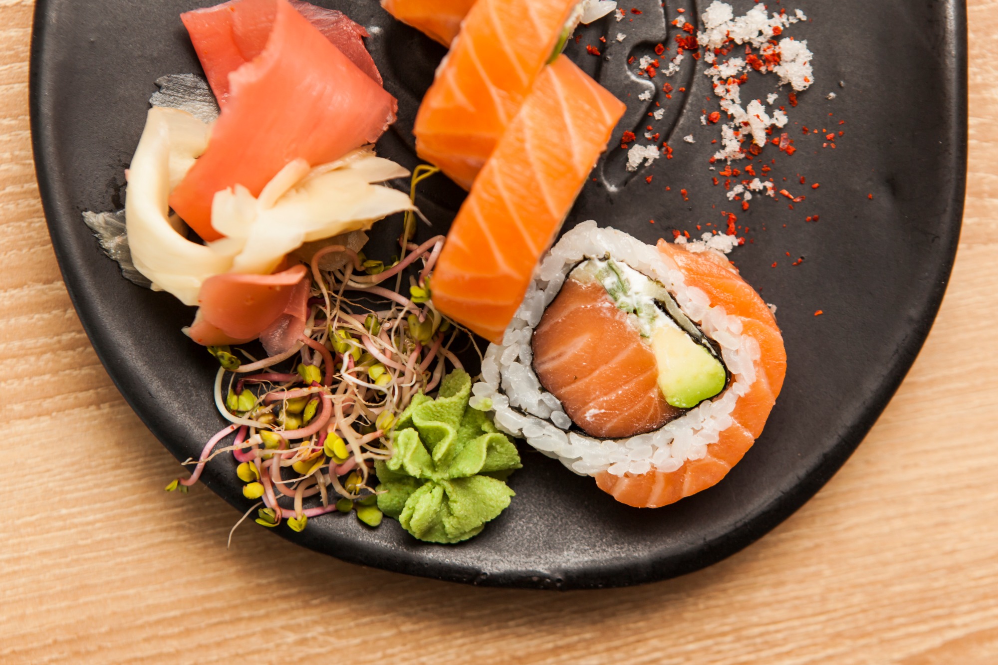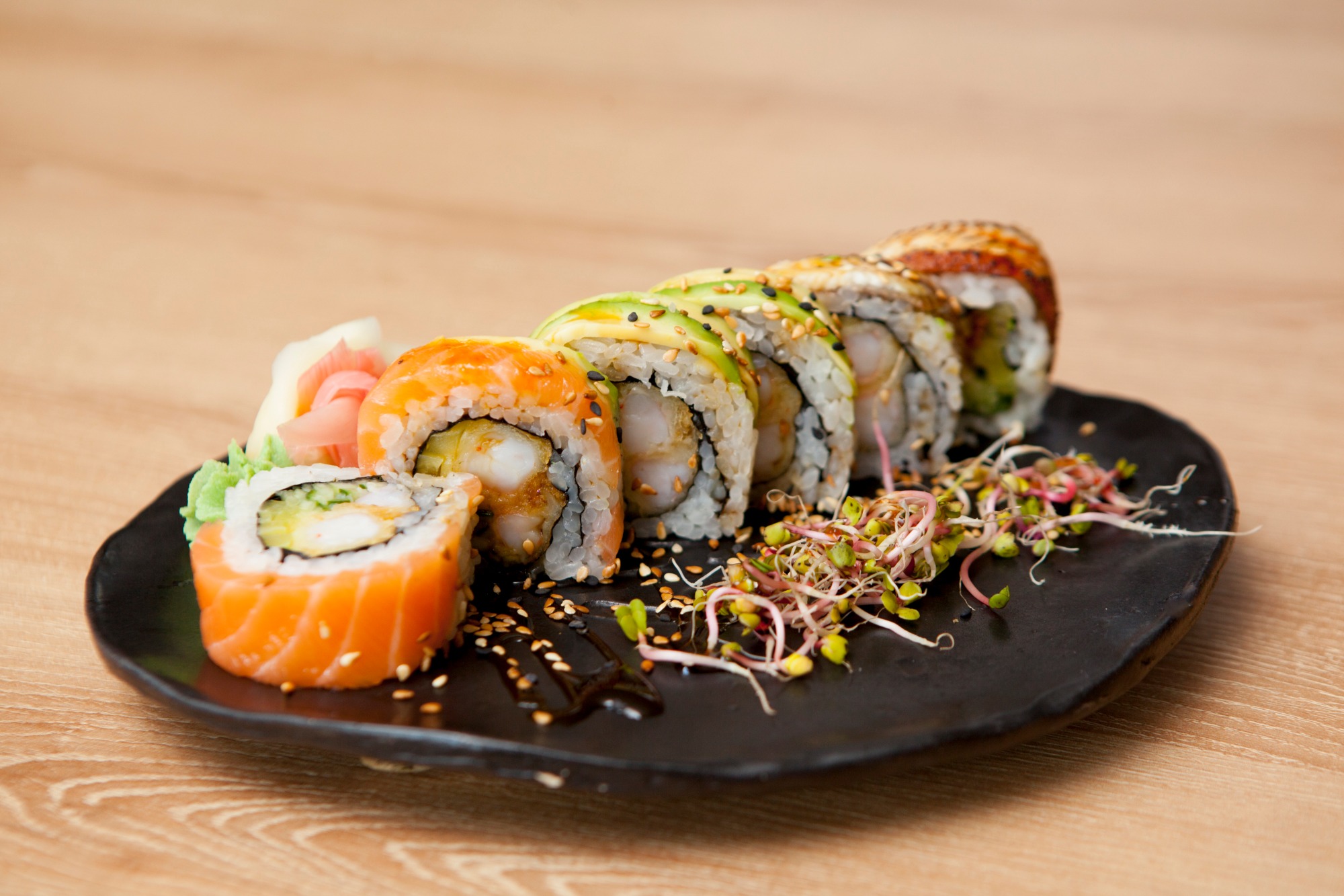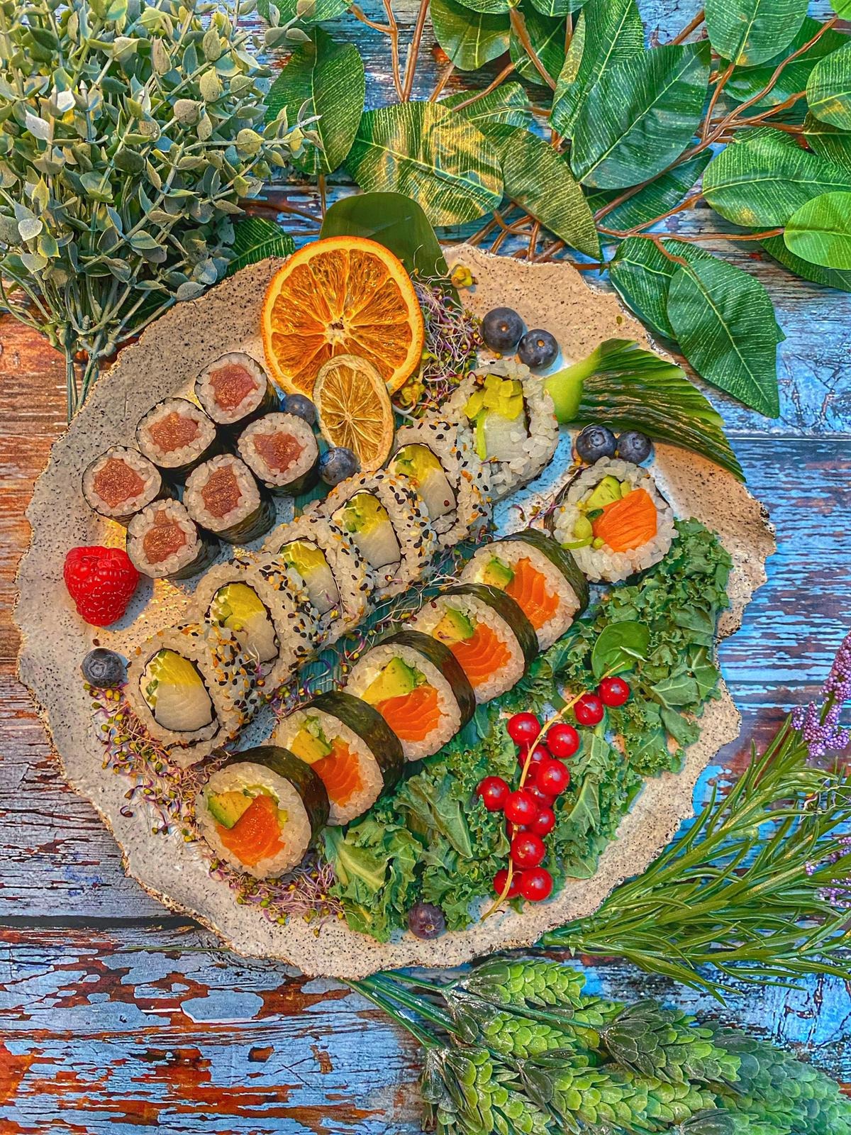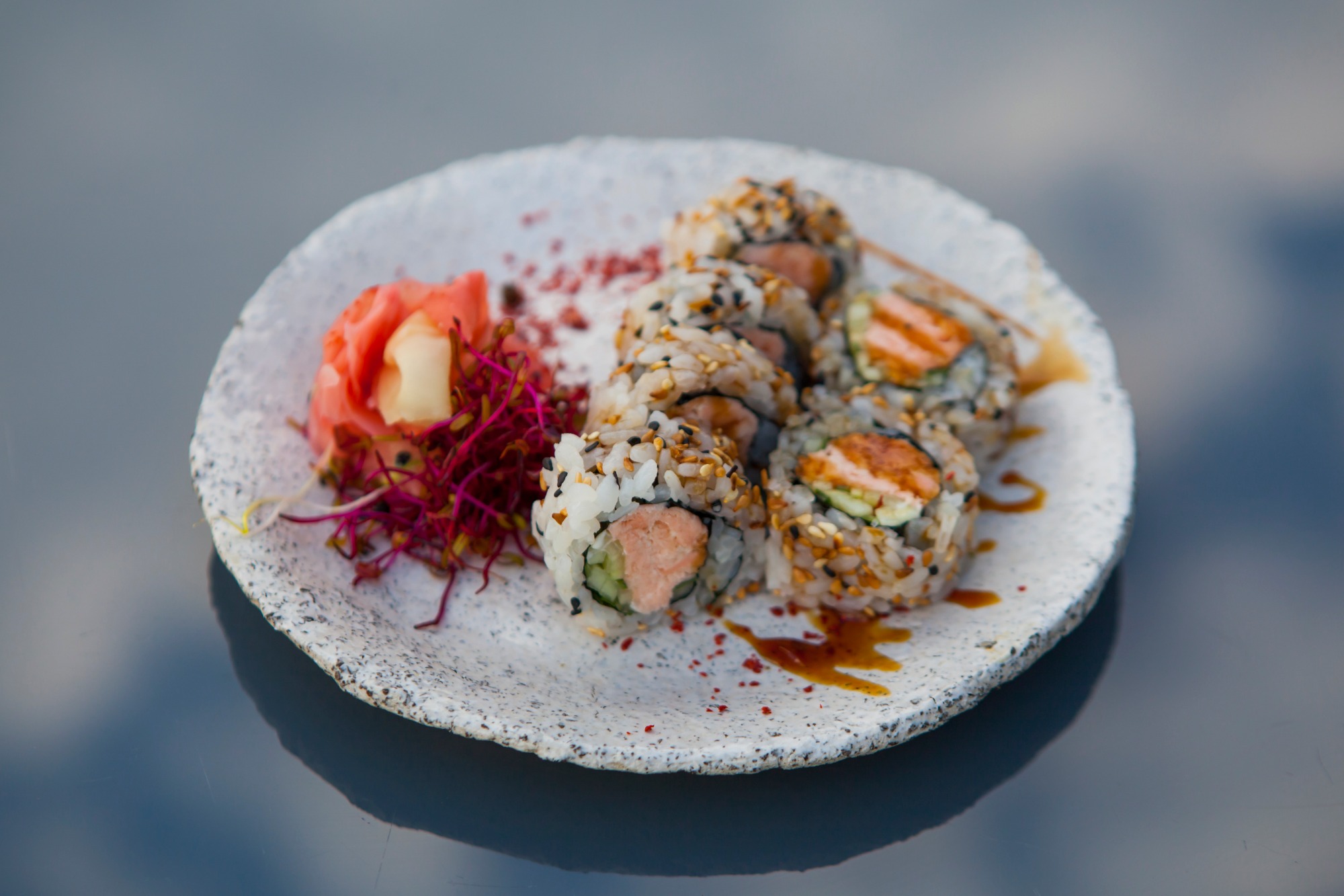 seriola, ogórek, awokado, serek, obłożone seriola, z miętą i limonką -